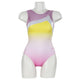 Sublimated scoop neck leotard with specialty lycra trim and attached crystals