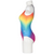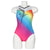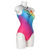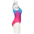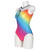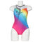 Sublimated V neck leotard with specialty lycra trim and attached crystals