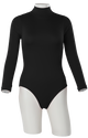 Sublimated V neck leotard with specialty lycra trim and attached crystals