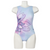 Sublimated scoop neck leotard with specialty lycra overlay and spangles