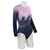 Sublimated high neck, long sleeved leotard with attached spangle detail